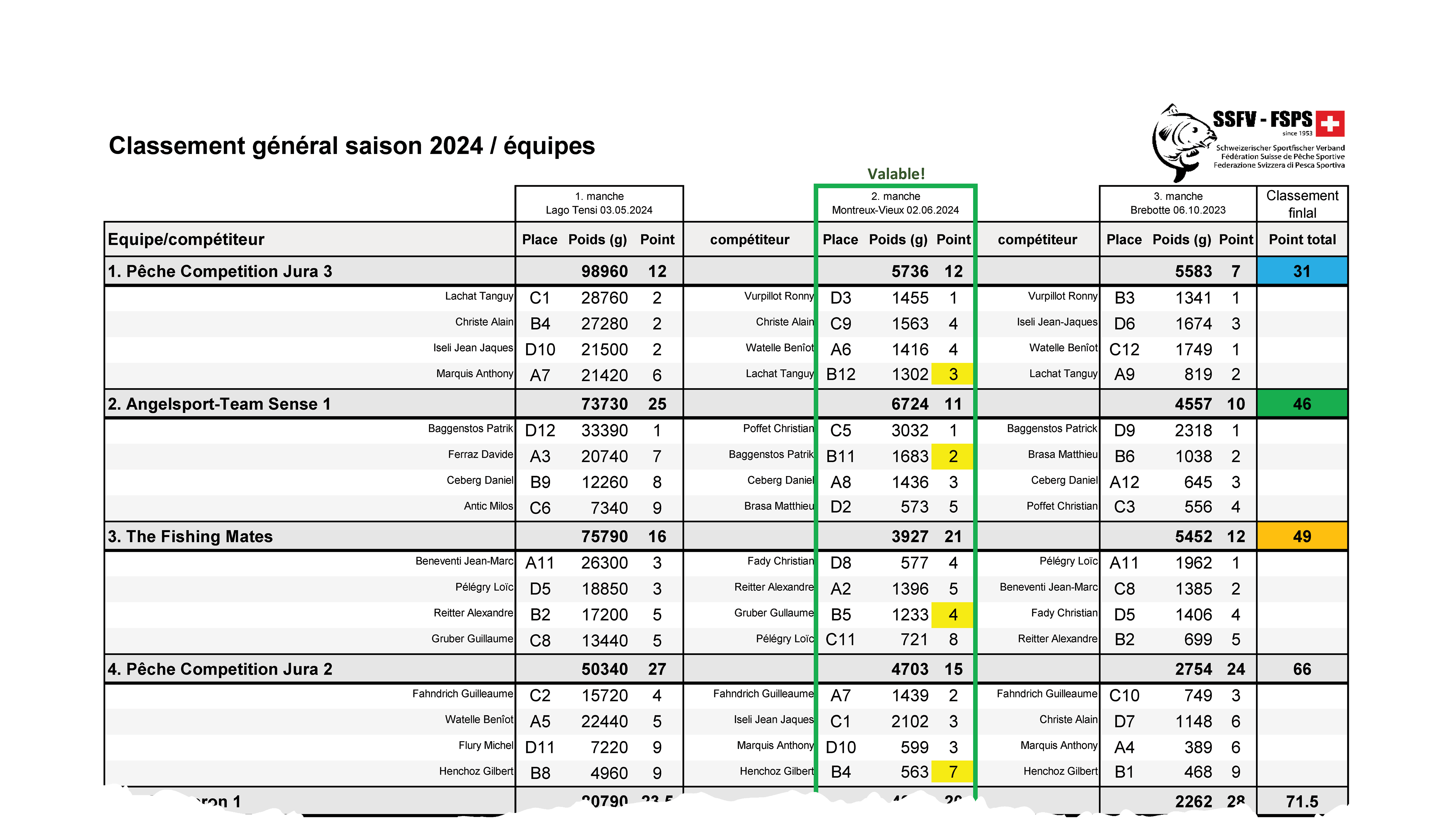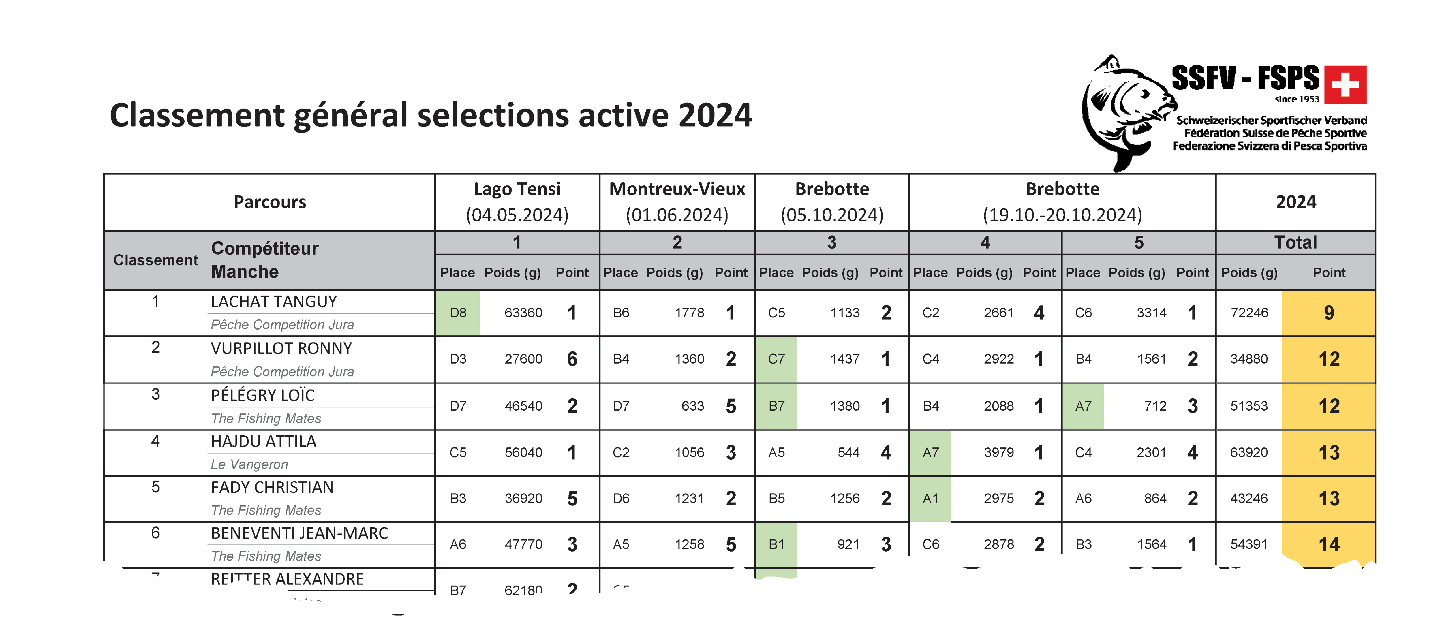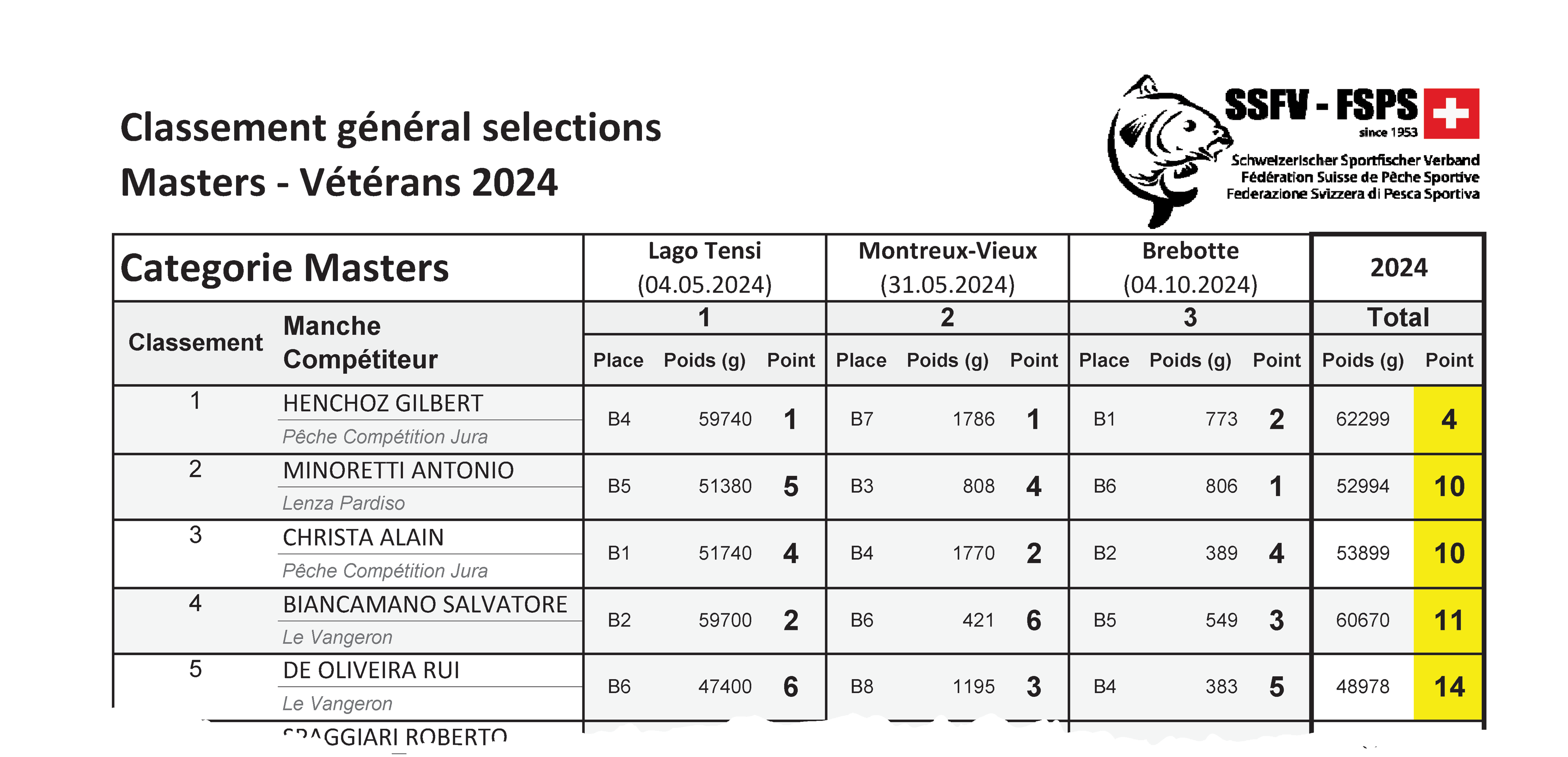 Deux membres de Pêche Compétition Jura font à nouveau partie de l’équipe de Suisse avec Ronny Vurpillot et Tanguy Lachat. Gilbert Henchoz, champion Suisse Master ainsi qu’Alain Christe à la 3e place, feront partie de l’équipe nationale qui participera au championnat du Monde au Portugal au mois de juin 2025.